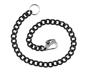 Example of the Indian Head Clasp on a Black Curb Chain With a Wallet Attachment Ring.